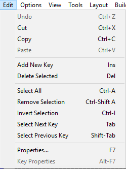 Note: Menu options will be grayed (disabled) when they are not appropriate, or don't apply based on various selections & settings. Ensure you have the correct/appropriate Key (or Keys) Selected, or check selected options if you are trying to perform a menu option and it is not available.