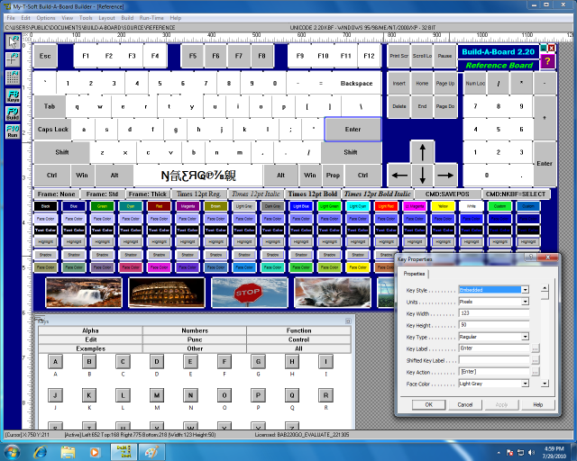 The Builder displays several optional windows, along with the main Panel Display where you can manipulate a My-T-Soft Panel - adding/deleting/modifying keys, their contents & actions.