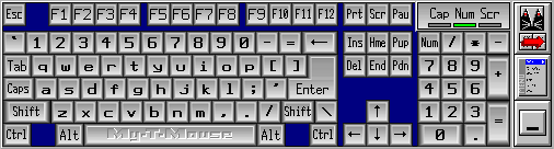 There are numerous layouts available for the keyboard panel, accessible through My-T-Mouse Setup, Keyboards - See My-T-Mouse Setup Help for information on available panels and how to change the current keyboard layout.